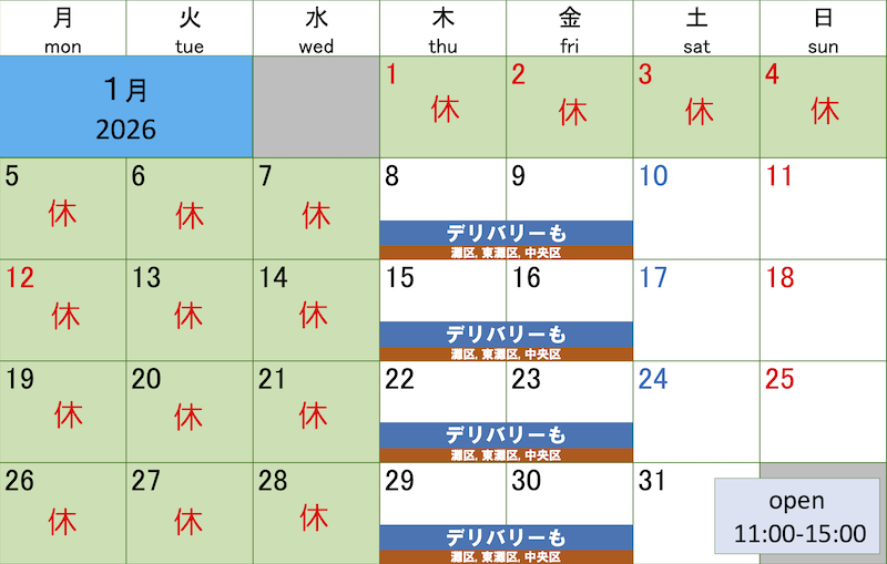 なお随時更新の営業カレンダーは下記からご確認いただけます↓↓↓